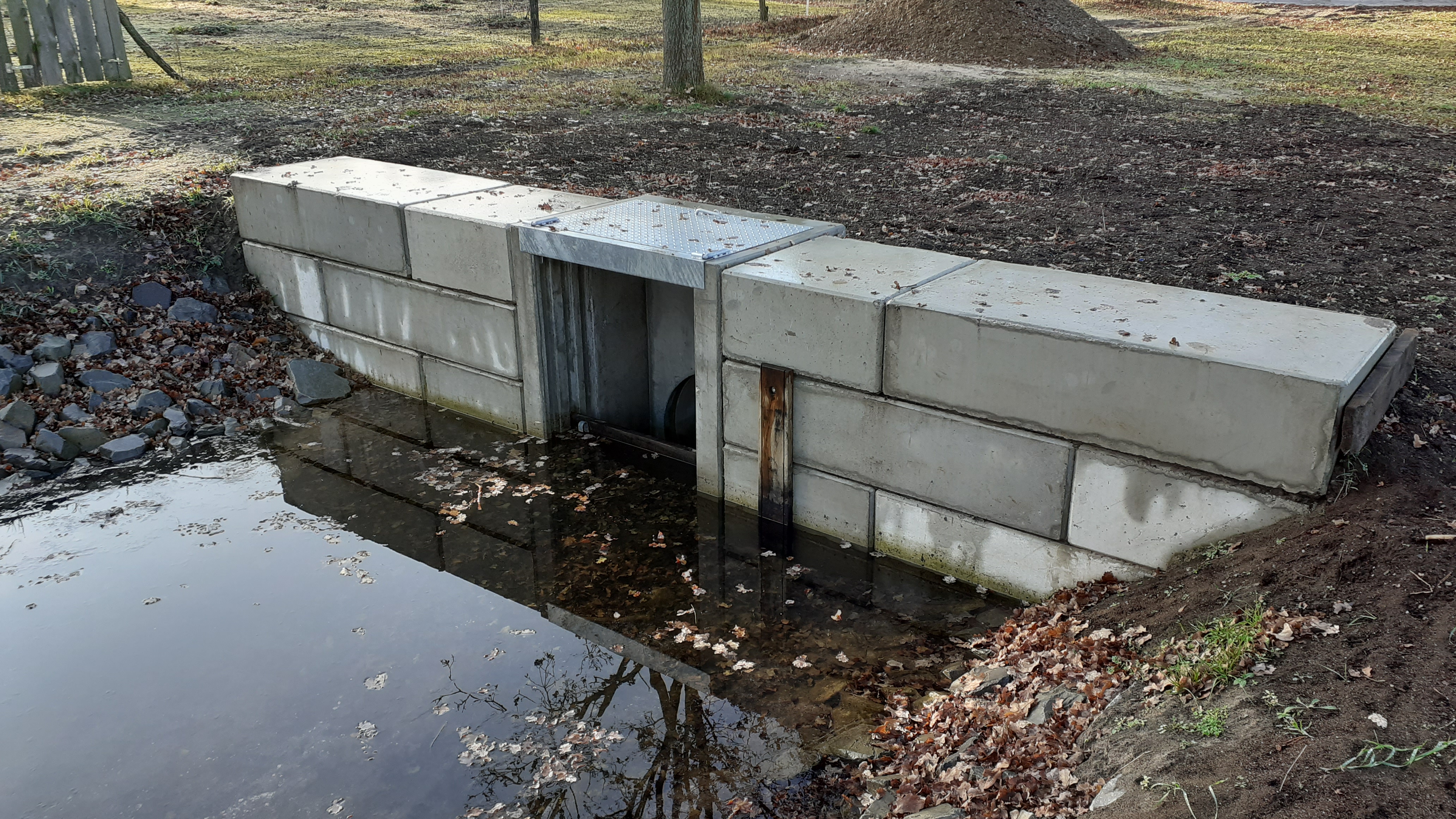 | Ziel | Neben der Sicherung der Vorflut für die landwirtschaftlichen Nutzflächen und für Teile des Naturschutzgebietes "Tannenwald" kann nun dieses gesamte Gebeit wieder eingestaut werden. Bedingt durch das eringe natürliche Gefälle kommt diesem Bauwerk eine Schlüsselfunktion zu. |